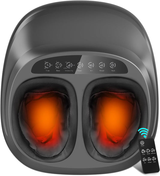Shiatsu Foot Massager, Foot Massager Machine with Heat, Remote Control, Multiple Massage Modes & Adjustable Intensity, Deep-Kneading Massager Fits Feet Up to Woen Size 12, Black/ZL7