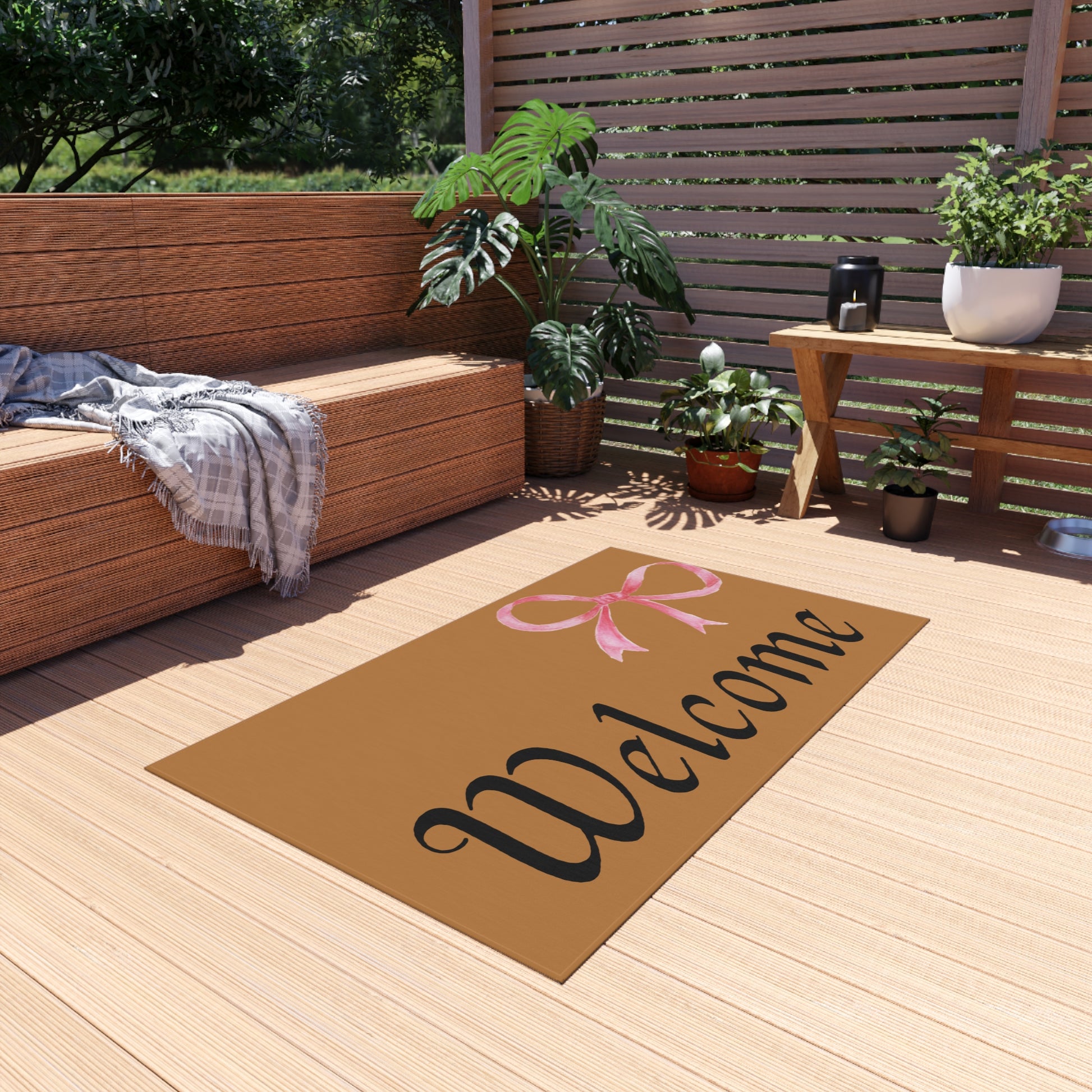 Welcome Outdoor Rug with Pink Bow Decorative Doormat for Porch & Entryway